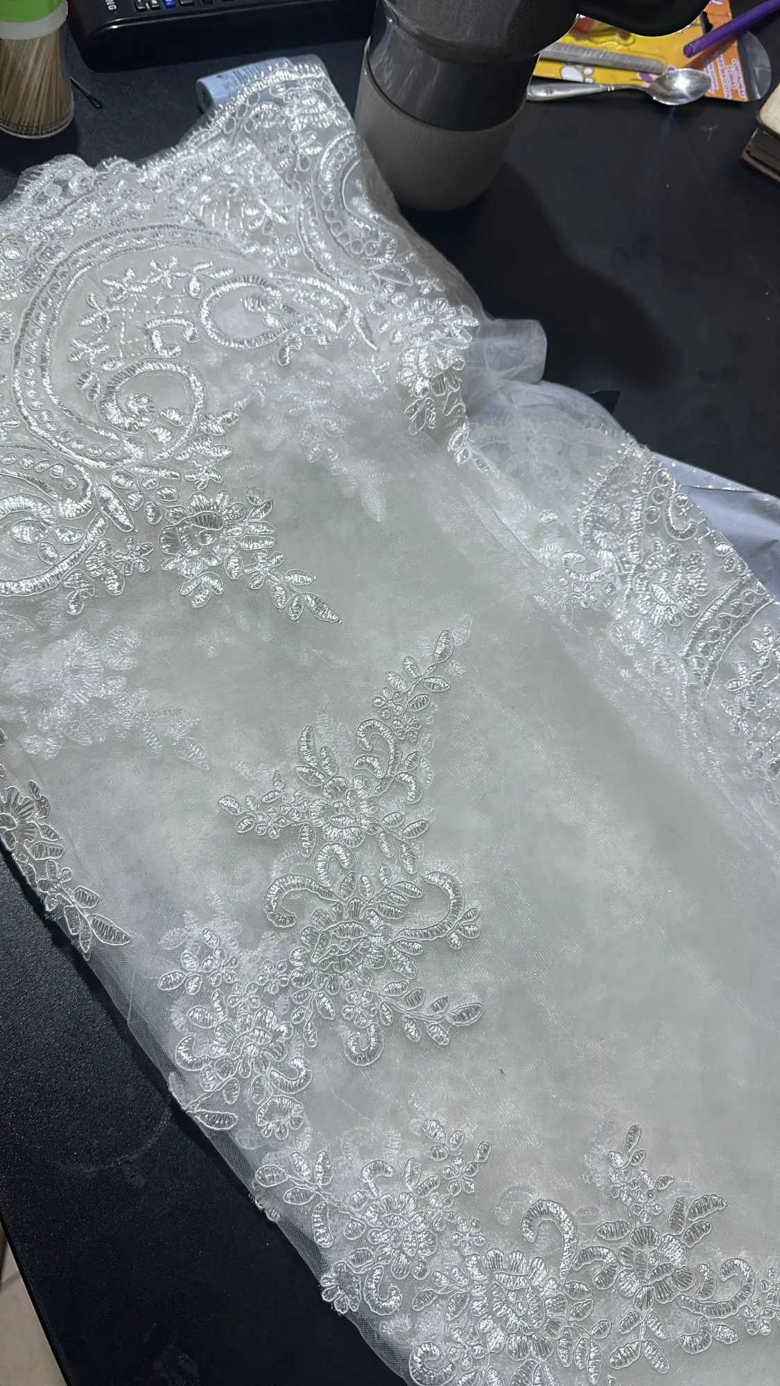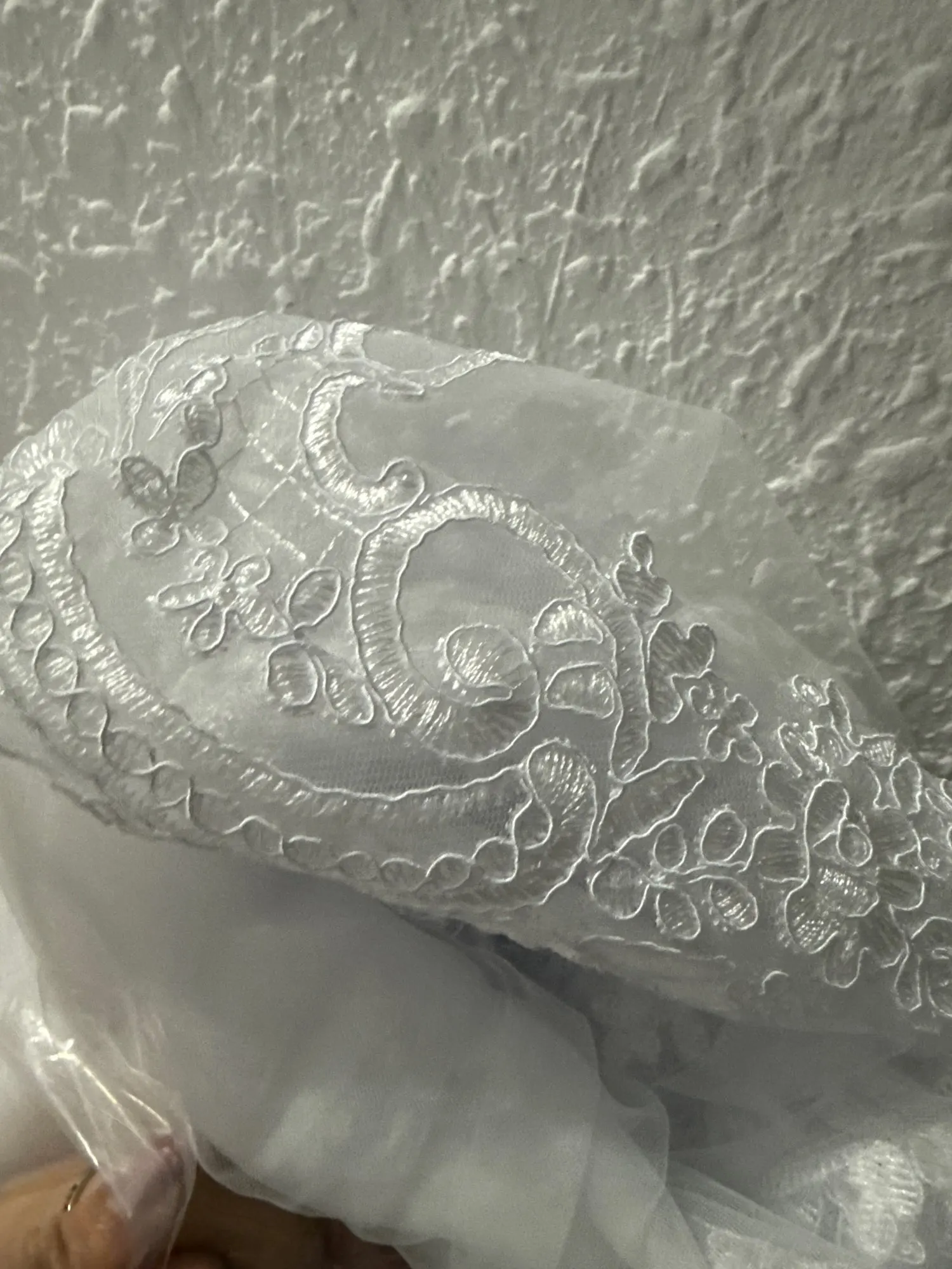Trasforma la tua visione nuziale con questo velo lungo fino a cattedrale, meticolosamente realizzato in pizzo pregiato e poliestere per offrire eleganza e resistenza. I delicati dettagli in pizzo applicati lungo i bordi creano un'estetica sofisticata e senza tempo che si adatta a qualsiasi abito da sposa. Scegli tra quattro ampie lunghezze - 300 cm, 350 cm, 400 cm o 500 cm - per abbinarle allo stile della cerimonia e alla location. Il pettine integrato garantisce un posizionamento sicuro e confortevole per tutto il giorno, sia che si scambino i voti nuziali al chiuso o che si celebrino all'aperto. Questo versatile capo si adatta con grazia alla processione e si presenta splendidamente in foto, rendendolo un investimento essenziale per la sposa esigente che cerca un'eleganza raffinata.