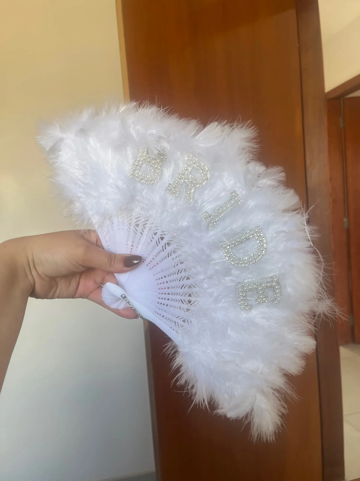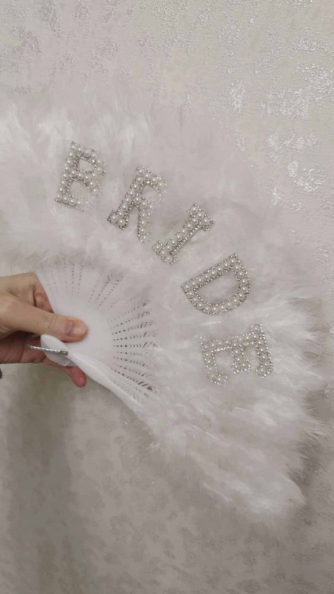 Bridal Feather Fan – Elegant Wedding Pearl Feather Accessory