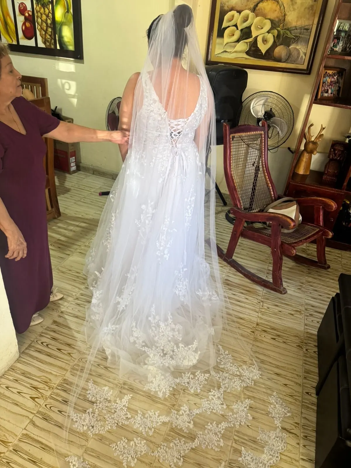 Questo squisito velo da cattedrale lungo 3 metri unisce l'eleganza senza tempo delle nozze a un design pratico. Il delicato bordo in pizzo aggiunge interesse visivo e volume, mentre il pettine in dotazione garantisce un posizionamento sicuro e senza problemi dalla cerimonia al ricevimento. La sua costruzione a strato singolo offre una sobria raffinatezza: la tonalità avorio richiama da vicino il bianco, garantendo un abbinamento armonioso con qualsiasi abito da sposa. L'ampia lunghezza di 3 metri crea la silhouette scenografica e fluida tipica delle cerimonie formali in cattedrale, pur rimanendo sufficientemente versatile per le celebrazioni contemporanee. Che preferiate uno stile classico o moderno, questo velo si adatta senza sforzo a ogni momento, offrendo sia impatto visivo che vestibilità. La raffinata lavorazione artigianale bilancia la tradizione nuziale tradizionale con il comfort contemporaneo, rendendolo una scelta essenziale per le spose esigenti che apprezzano la qualità della lavorazione e un fascino senza tempo.